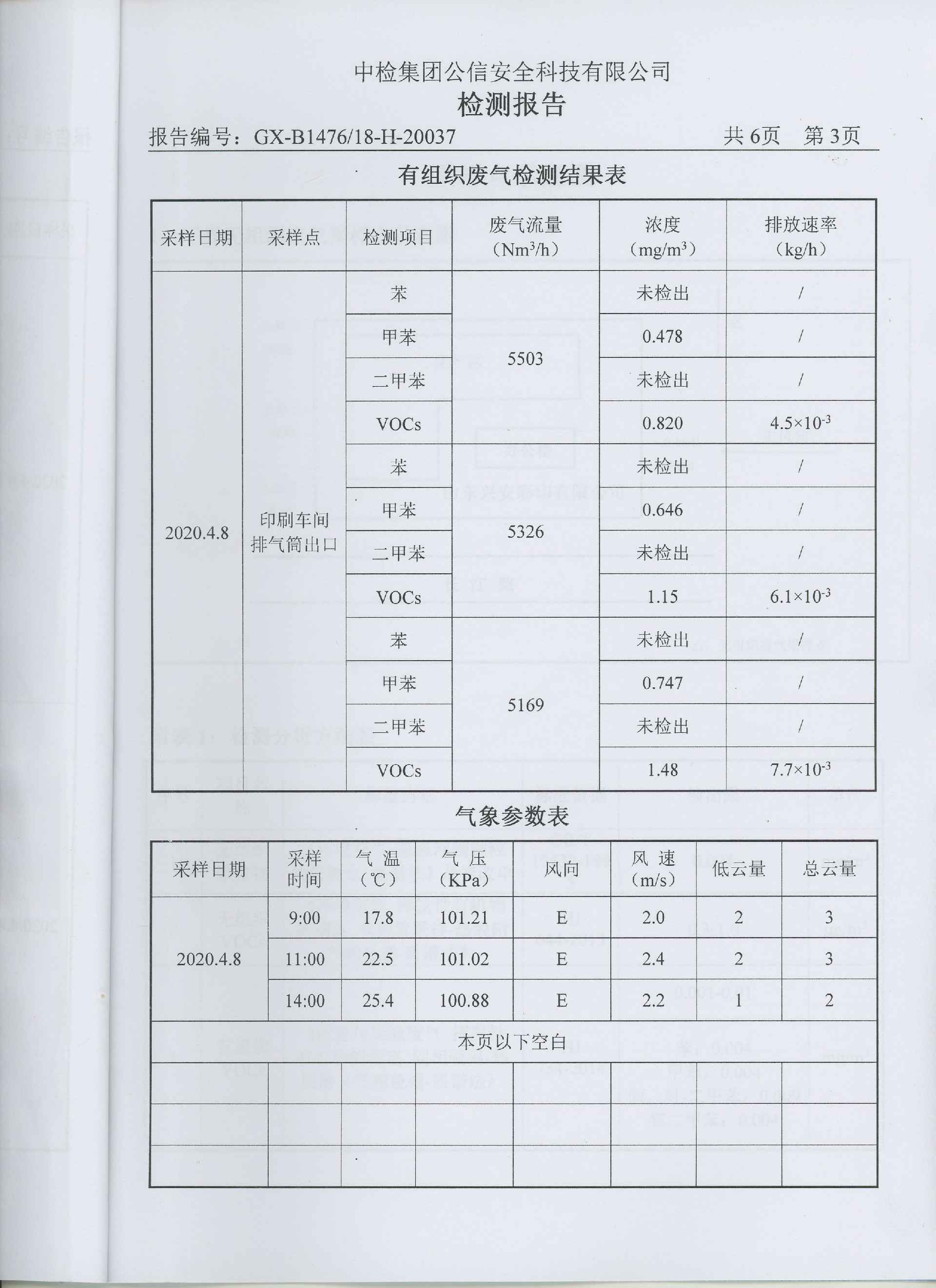 常州傅明汽车美容与维修有限公司一直把环保治理工作作为企业发展重中之重,根据市区生态环境保护局要求于2017年8月份率先上了Ⅴ0Cs环保处理设备,印刷车间废气通过收集风管,进入过滤器,将空气颗粒物过滤掉,经过光催化氧化分解剩余有机废气,同时由离子氧化进一步处理残余废气,将有机废气氧化成二氧化碳和水,通过烟囱引高排。2018年2月经有关环保专家验收合格,有机挥发物排放达标。每季度都委托枣庄公信安全科技公司对公司有机挥发物废气各项指标进行检测,下图为最新监测数据: